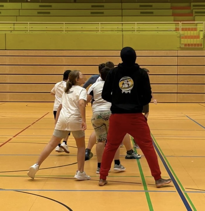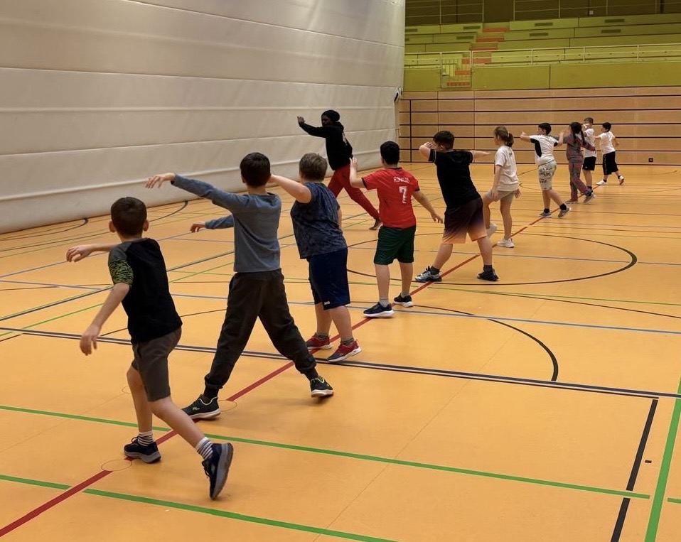 Die Schülerinnen und Schüler der 3. Klasse dürfen zur Zeit im Sportunterricht unter Anleitung des Trainers Souvenir Kokolo einige grundlegende Bewegungen und Bewegungskombinationen der Capoeira kennenlernen und einüben.